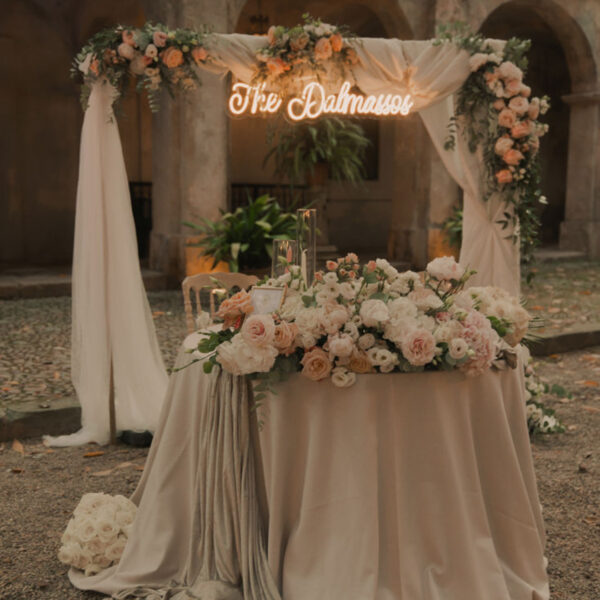 Personalized glasses, made in Italy porcelain, mats created ad hoc for the event. Nothing is left to chance in the design of the table for Antonella Carta. From centerpieces to fabrics for tablecloths, everything can be created and customized in order to make the table a real scenographic element that perfectly follows the fil rouge of the entire event. Everything is chosen under the supervision of Antonella Carta who personally takes care of creating the perfect mise en place for any customer.